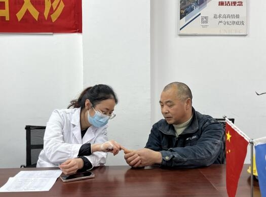 本次活動在南樾天宸二期項目部會議室開展?;顒蝇F(xiàn)場,健康專家采取面對面坐診形式,為員工進行健康答疑,提出針對性的預防和醫(yī)療建議,引導員工在工作之余養(yǎng)成健康生活習慣,加強多方面健康知識學習。由于長期在戶外進行施工工作,一線員工們大多存在不同程度的腰椎損傷、噪音聾、手臂震動病等職業(yè)疾病,面對此情況,專家們現(xiàn)場教授員工健康自測方法,并為員工量身打造體檢方案,便于員工下一步的健康診療。