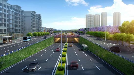 金渝大道與龍健路節(jié)點工程位于鴛鴦組團南部,西側為金山隧道,東側為鴛鴦立交,北側為湖津路,南側為龍寧路。立交主線金渝大道全長800米,含4條匝道,總長為1112.472米。項目通車后保證了金渝大道直行過境交通的暢通性,提高了金渝大道對項目區(qū)域地塊的服務功能。本項目同時獲得2022年度“重慶市市政工程金杯獎”。