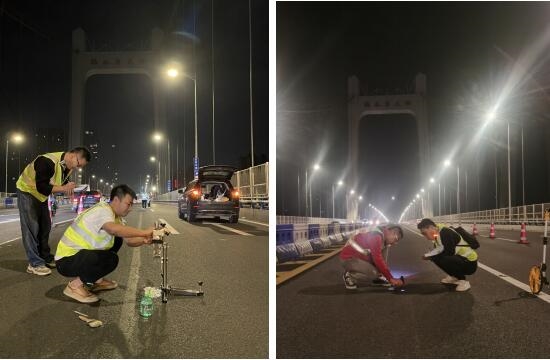 近日,為確保鵝公巖大橋行車安全,保障民生出行需求,重慶設(shè)計集團市建科院公司所屬子企業(yè)重慶市建設(shè)工程質(zhì)量檢驗測試中心有限公司(以下簡稱“檢測中心”)夜間對大橋開展橋面鋪裝層行病害調(diào)查及專項檢測。