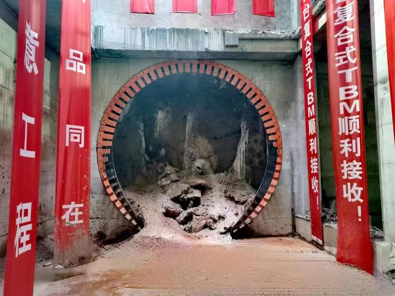 瓦茶區(qū)間為單洞雙線隧道,左線長約1.7km,最大坡度36‰,隧道頂部最大埋深約32m,系該工程首條長距離、大坡度盾構隧道。掘進路線主要穿越回填土區(qū),隧道上方范圍內(nèi)有多個U型回填土層集水凹槽,地下水豐富,水壓較高,地質條件復雜,掘進過程中易造成管片上浮、錯臺、滲漏水、掘進效率低等問題。盾構施工過程采用了特殊調配添加劑的預拌砂漿、在富水區(qū)開孔泄水時采用雙液漿封水環(huán)和二次補注漿等技術措施,確保了施工質量,實現(xiàn)了TBM勻速穩(wěn)步掘進。同時借助先進的電子監(jiān)測設備和智慧工地管理系統(tǒng),實現(xiàn)全施工過程信息化監(jiān)測,切實保障施工過程安全。市建科院檢測中心作為該工程的第三方檢測方,在盾構施工過程中,積極組織人員,全力配合項目進度,及時開展相關料原材料等檢測工作,及時出具檢測報告,確保各項檢測參數(shù)滿足設計及規(guī)范要求。