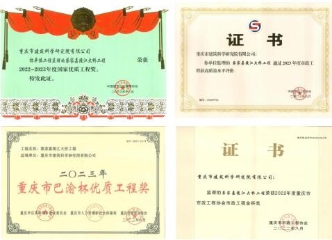 在蔡家嘉陵江大橋修建過(guò)程中,項(xiàng)目部創(chuàng)新性監(jiān)理工作,建立健全全壽命質(zhì)量控制體系,采用無(wú)人機(jī)進(jìn)行項(xiàng)目智慧管理,利用數(shù)據(jù)信息對(duì)施工現(xiàn)場(chǎng)進(jìn)行統(tǒng)一調(diào)配;采用智慧工程——建設(shè)工程協(xié)同管理平臺(tái),將工程項(xiàng)目全生命周期中的信息模型、數(shù)據(jù)信息、管理資料等集合顯示處理,實(shí)現(xiàn)全過(guò)程協(xié)同管理,顯著提高工作效率;率先實(shí)行了二維碼唯一標(biāo)識(shí)見(jiàn)證取樣管理制度,實(shí)現(xiàn)每一組試件、每一份報(bào)告均可溯源。項(xiàng)目獲評(píng)國(guó)家優(yōu)質(zhì)工程獎(jiǎng)、市政工程最高質(zhì)量水平評(píng)價(jià)(原國(guó)家市政工程金獎(jiǎng))、重慶市市政工程金杯獎(jiǎng)、三峽杯優(yōu)質(zhì)結(jié)構(gòu)工程獎(jiǎng)、巴渝杯優(yōu)質(zhì)結(jié)構(gòu)工程獎(jiǎng)、重慶市智慧工地示范項(xiàng)目。