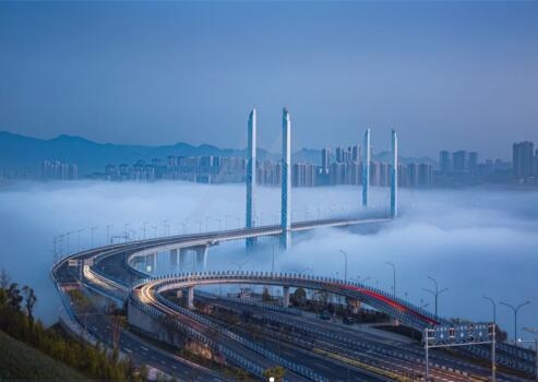 從“星際穿越”到“輕軌穿樓”再到“開(kāi)往春天的列車”……重慶道橋隧建設(shè)從來(lái)不缺乏熱點(diǎn)話題,而當(dāng)橋都遇上霧都,每逢初晴云起之時(shí),在逶迤秀麗的嘉陵江蔡家段,一場(chǎng)雙橋凌云飛架、車輛地鐵穿云而過(guò)的奇景就會(huì)上演。