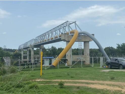 米坦格河桁架跨越工程為中緬油氣管道-緬甸段重要控制性節(jié)點(diǎn)工程,該橋梁跨越處河面寬度為180米,采用三跨簡支桁架梁結(jié)構(gòu),邊跨64.4m,中間跨65m,總跨度193.8m。受東南亞天然氣管道有限公司(SEAGP)的委托,市建科院承接了緬甸段米坦格河桁架跨越工程定期檢測服務(wù)。