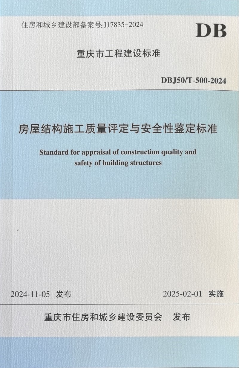 經市住房城鄉(xiāng)建委批準,由市建科院主編的重慶地方標準《房屋結構施工質量評定與安全性鑒定標準》(DBJ50/T-500-2024)將于2025年2月1日起施行。