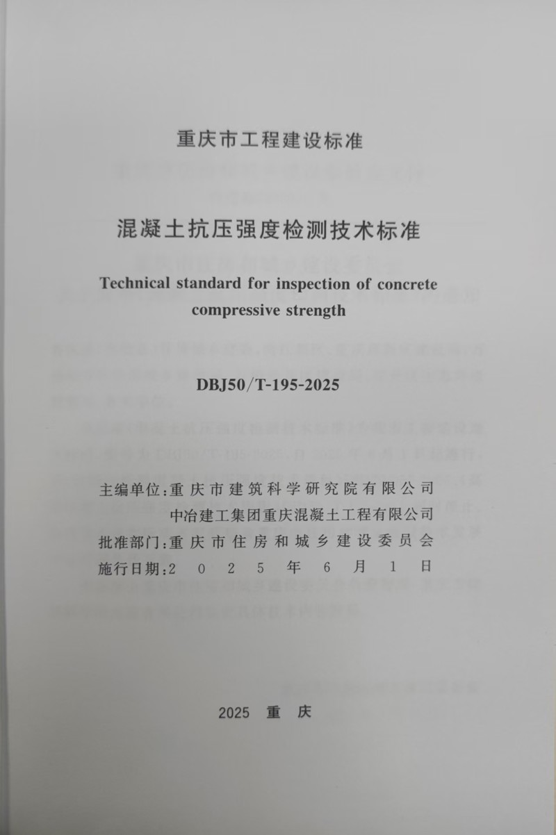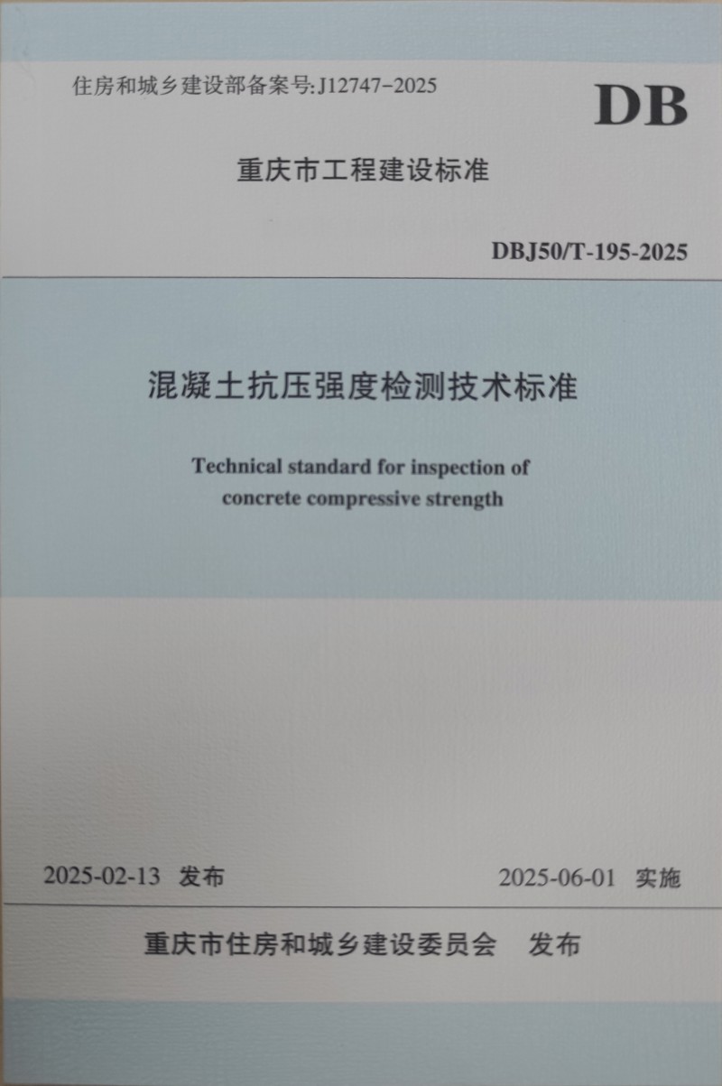 近日,由重慶設(shè)計(jì)集團(tuán)所屬子企業(yè)重慶市建筑科學(xué)研究院有限公司(以下簡稱“市建科院”)聯(lián)合中冶建工集團(tuán)重慶混凝土工程有限公司主編的重慶市《混凝土抗壓強(qiáng)度檢測技術(shù)標(biāo)準(zhǔn)》(DBJ50/T-195-2025)(以下簡稱《標(biāo)準(zhǔn)》)正式發(fā)布,經(jīng)重慶市住房和城鄉(xiāng)建設(shè)委員會批準(zhǔn),將于2025年6月1日正式實(shí)施。