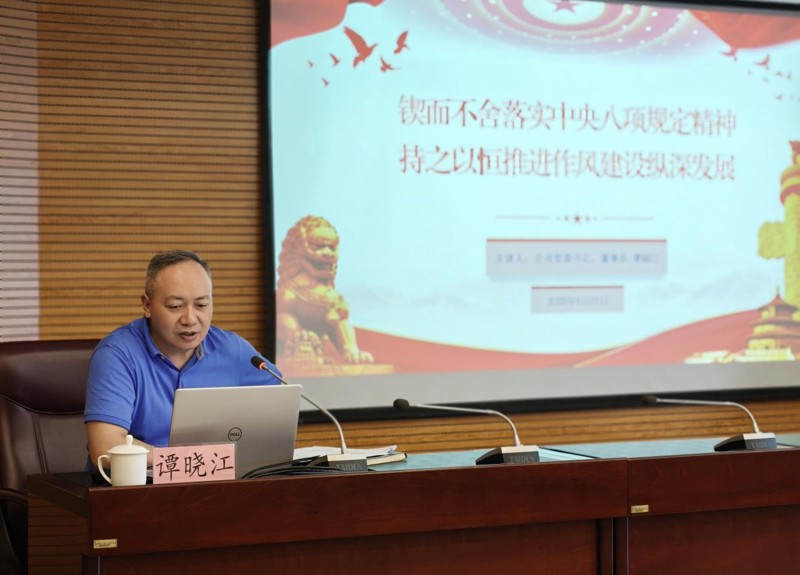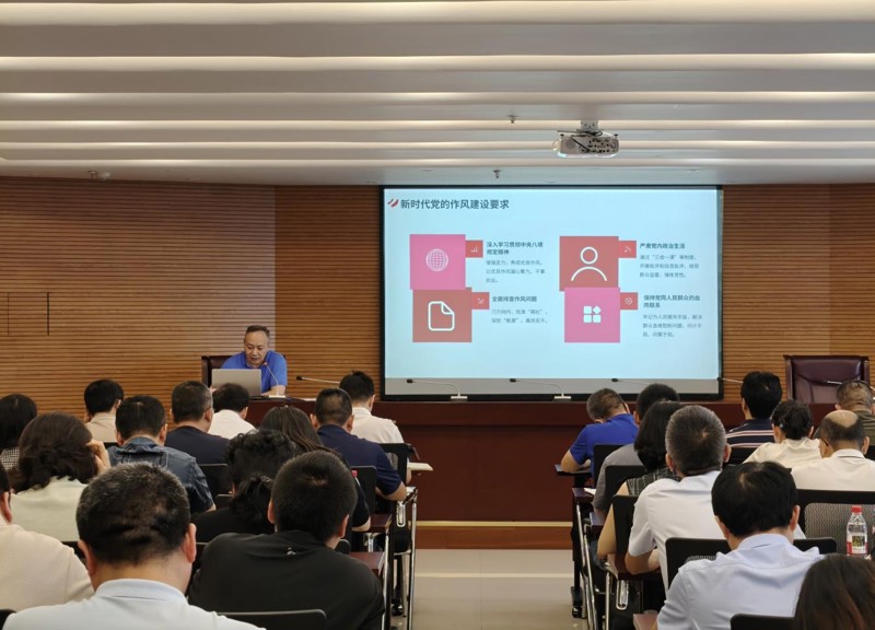 為推動深入貫徹中央八項規(guī)定精神學習教育走深走實,進一步強化黨員干部紀律意識、筑牢作風根基,6月27日,在慶祝中國共產(chǎn)黨成立104周年之際,重慶設計集團所屬子企業(yè)重慶市建科院黨委書記、董事長譚曉江同志以《鍥而不舍落實中央八項規(guī)定精神 持之以恒推進作風建設縱深發(fā)展》為題講授專題黨課。公司在家黨委班子成員、中層管理人員、黨支部書記、紀委委員等共計80余人參加。