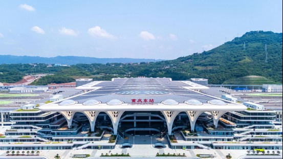 重慶東站位于南岸區(qū)茶園新區(qū)東南側(cè),站房樞紐總建筑面積達(dá)122萬平方米。作為國家“八縱八橫”高速鐵路網(wǎng)的重要交匯點(diǎn)和重慶構(gòu)建“米”字型高鐵網(wǎng)的關(guān)鍵節(jié)點(diǎn),它是西部地區(qū)最大的鐵路樞紐,也是國家交通強(qiáng)國“站城一體化發(fā)展”試點(diǎn)項目。重慶東站將引入渝廈、渝萬、成渝、渝貴、渝昆等高鐵、樞紐東環(huán)線普鐵以及4條軌道交通線,實現(xiàn)鐵路、軌道、公交、長途等多種交通方式的“零換乘”。這座現(xiàn)代化綜合交通樞紐已成為重慶“新地標(biāo)”,顯著提升了城市運(yùn)行品質(zhì),改善了旅客出行環(huán)境,拉動了周邊區(qū)域發(fā)展活力,對助力成渝地區(qū)雙城經(jīng)濟(jì)圈建設(shè)意義重大。