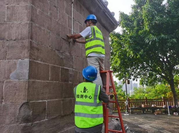 項(xiàng)目推進(jìn)過(guò)程中,市建科院積極聯(lián)動(dòng)多方力量,為監(jiān)測(cè)工作的科學(xué)性與合規(guī)性保駕護(hù)航。重慶市文物考古研究院、江北區(qū)文物保護(hù)管理所的相關(guān)人員與監(jiān)測(cè)團(tuán)隊(duì)并肩作戰(zhàn),在高溫環(huán)境下共同勘察現(xiàn)場(chǎng)、深入溝通,逐一確認(rèn)監(jiān)測(cè)設(shè)備的安裝部位,并就文物安裝的注意事項(xiàng)進(jìn)行細(xì)致的技術(shù)交底。多方協(xié)作確保了設(shè)備部署既能滿足監(jiān)測(cè)的精準(zhǔn)需求,又嚴(yán)格遵循文物保護(hù)的專(zhuān)業(yè)規(guī)范,讓每一步操作都經(jīng)得起專(zhuān)業(yè)檢驗(yàn)。